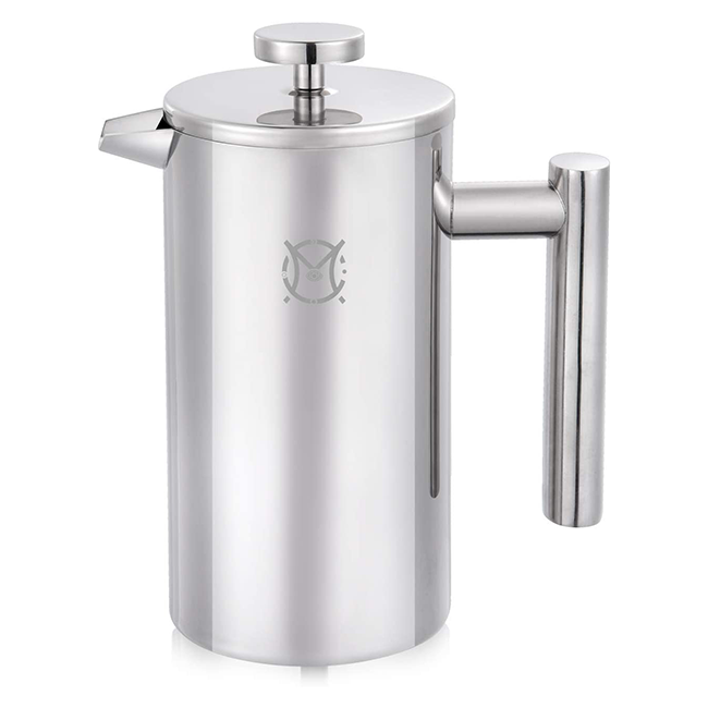 If money is tight but you still want the best French press for your buck, you’d be hard-pressed to do worse than Secura’s French press. A trusted brand when it comes to kitchen equipment and appliances, Secura has managed to design a French press that performs well, looks great but won’t break your bank at the same time. The device is constructed from polished stainless steel and includes a cool-touch handle that won’t burn your hand no matter how hot the contents of the press are. It comes in four different sizes – 12oz, 17oz, 34oz, and 50oz – and is dishwasher safe, so cleaning up after successful brewing is a breeze.