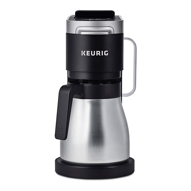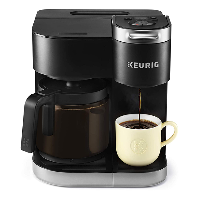 • Brews both drip coffee and single-serving K-Cup pods